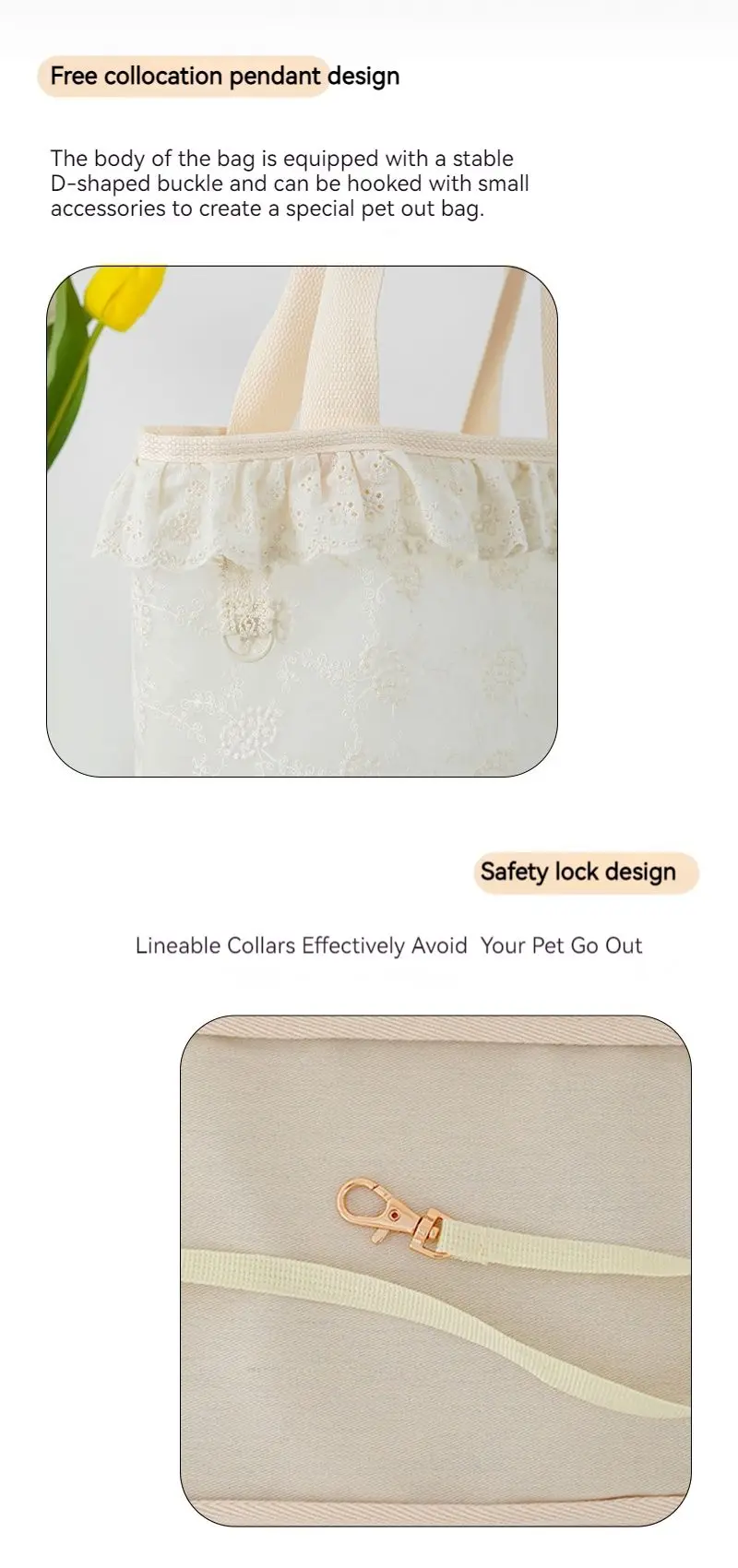 Bolsa de viagem para animais de estimação pequena em renda